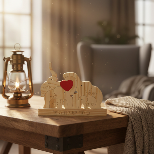 פאזל פילים🐘- עוצמה משפחתית חרוטה בעץ