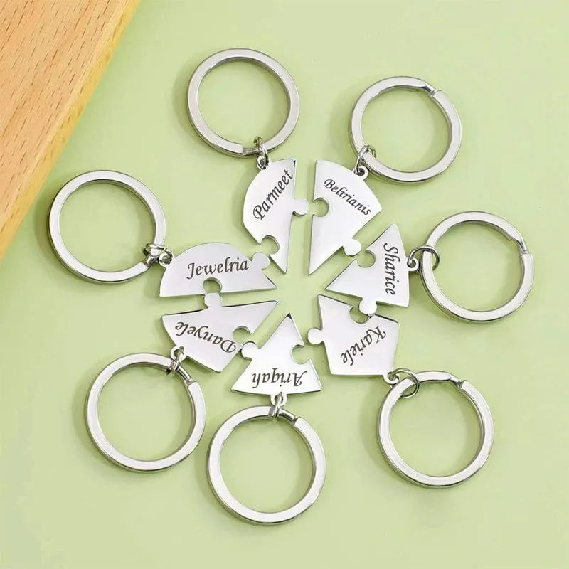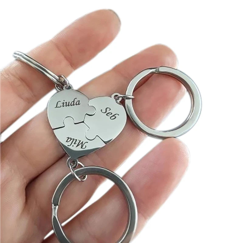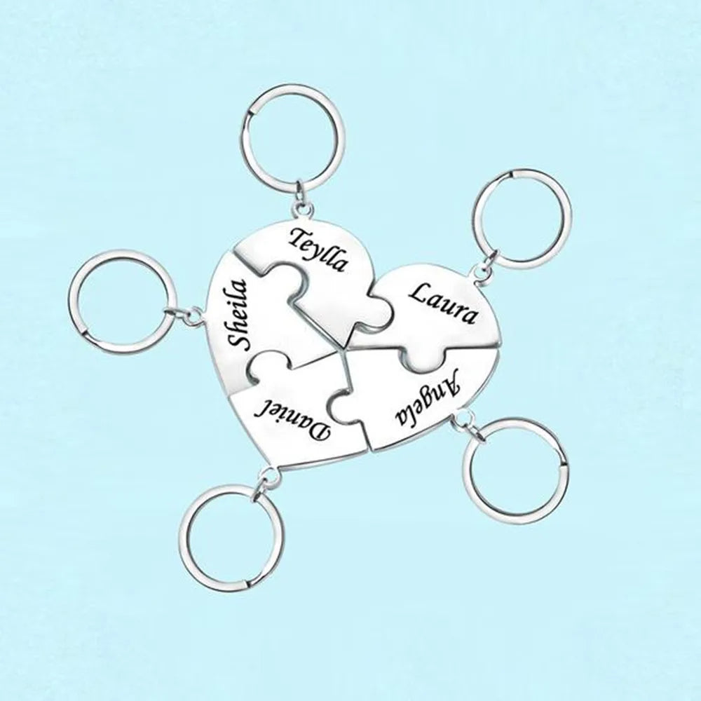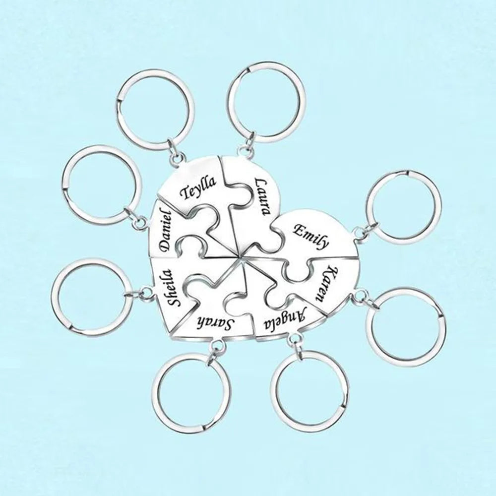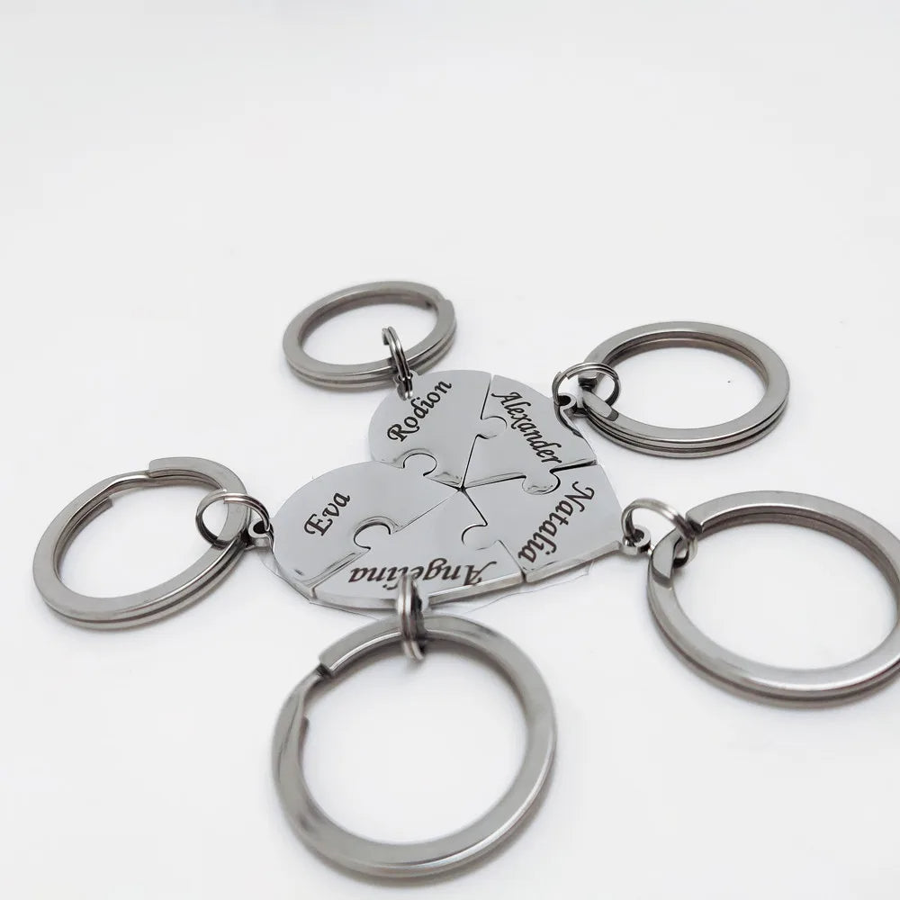 מחזיק מפתחות פאזל משפחתי בהתאמה אישית בעיצוב חדשני מאפשר להנציח את שמות בני המשפחה על חלקי הפאזל שיחוברו ללב אחד. מתנה מושלמת ליום הולדת, יום נישואין, או פשוט כמחווה משפחתית מחממת לב.