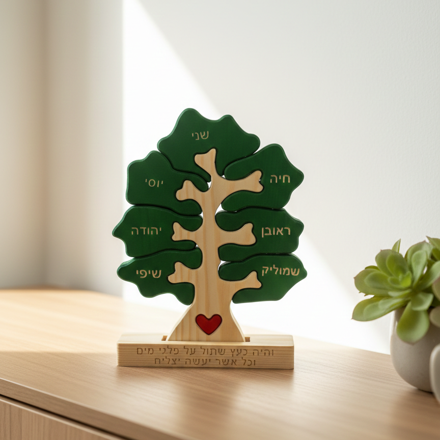 זה עץ משפחה מעץ טבעי, בעיצוב אישי,