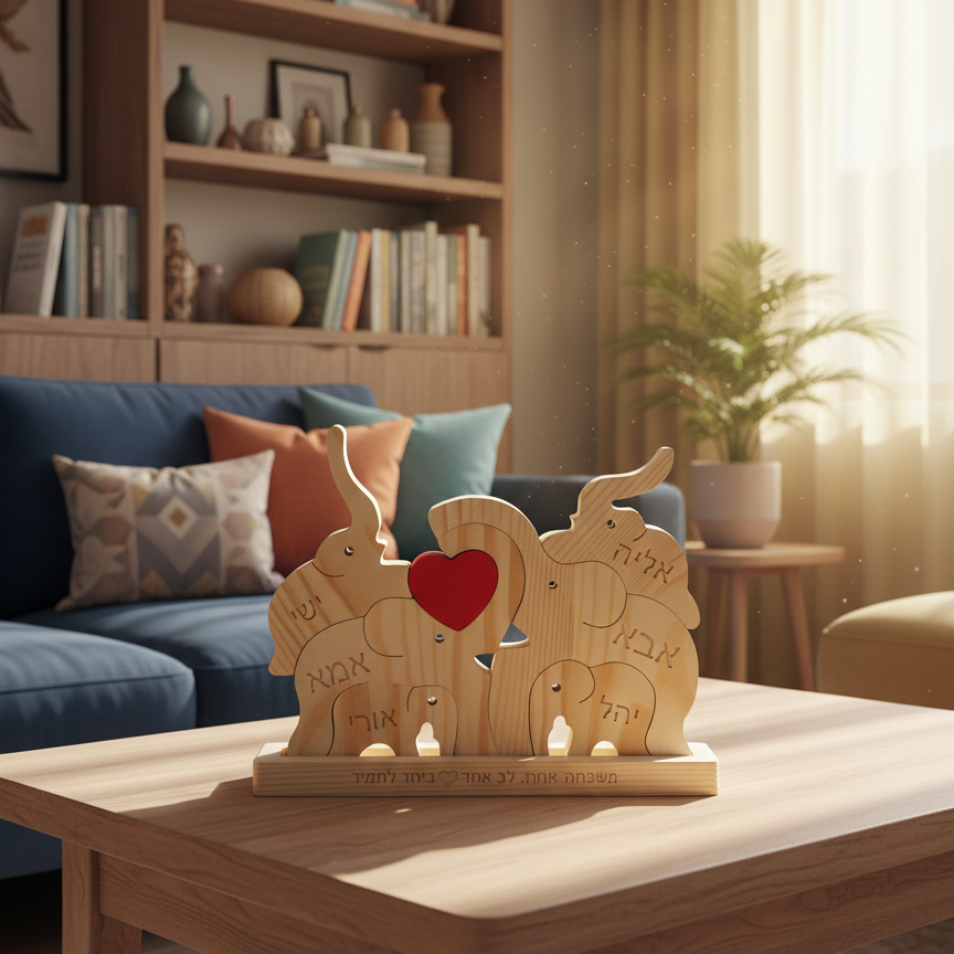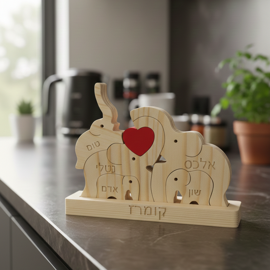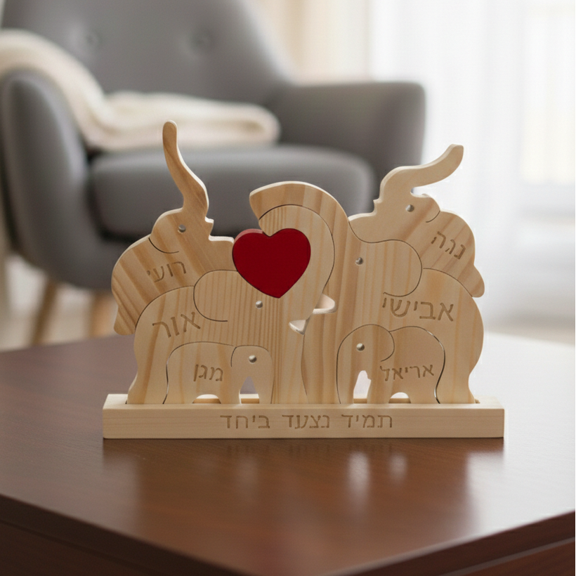 פאזל פילים🐘- עוצמה משפחתית חרוטה בעץ